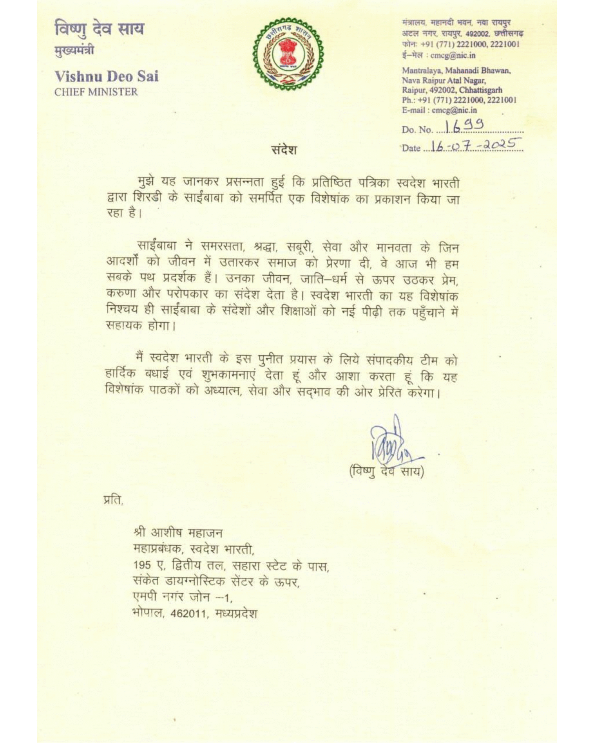 हम मानते हैं कि “व्यक्ति निर्माण से समाज निर्माण और समाज निर्माण से राष्ट्र निर्माण” संभव है। इसी विचार के साथ ‘स्वदेश भारती’ एक सशक्त, जागरूक और समृद्ध भारत के निर्माण के लिए कार्यरत है।